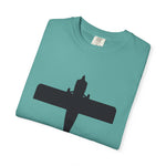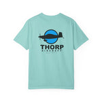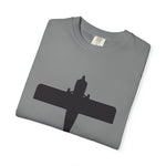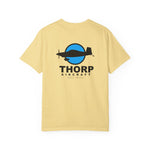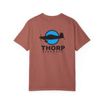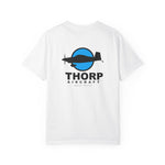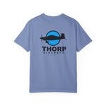 A Thorp Aircraft logo t-shirt with a Top View Silhouette of a Thorp T18/S-18. This t-shirt combines a relaxed fit with a timeless crew neckline, making it a versatile choice for casual outings or semi-formal events. The unique garment-dyed fabric offers a soft texture and vivid colors, allowing you to express your individual style effortlessly. Ideal for aviation enthusiasts or anyone looking to add an interesting piece to their collection, this t-shirt makes a thoughtful gift for birthdays, holidays, or just because. Whether you're lounging at home or out with friends, this shirt is designed to keep you comfortable and looking great. Available in a wide range of sizes from S to 4XL, it ensures that everyone can find their perfect fit!